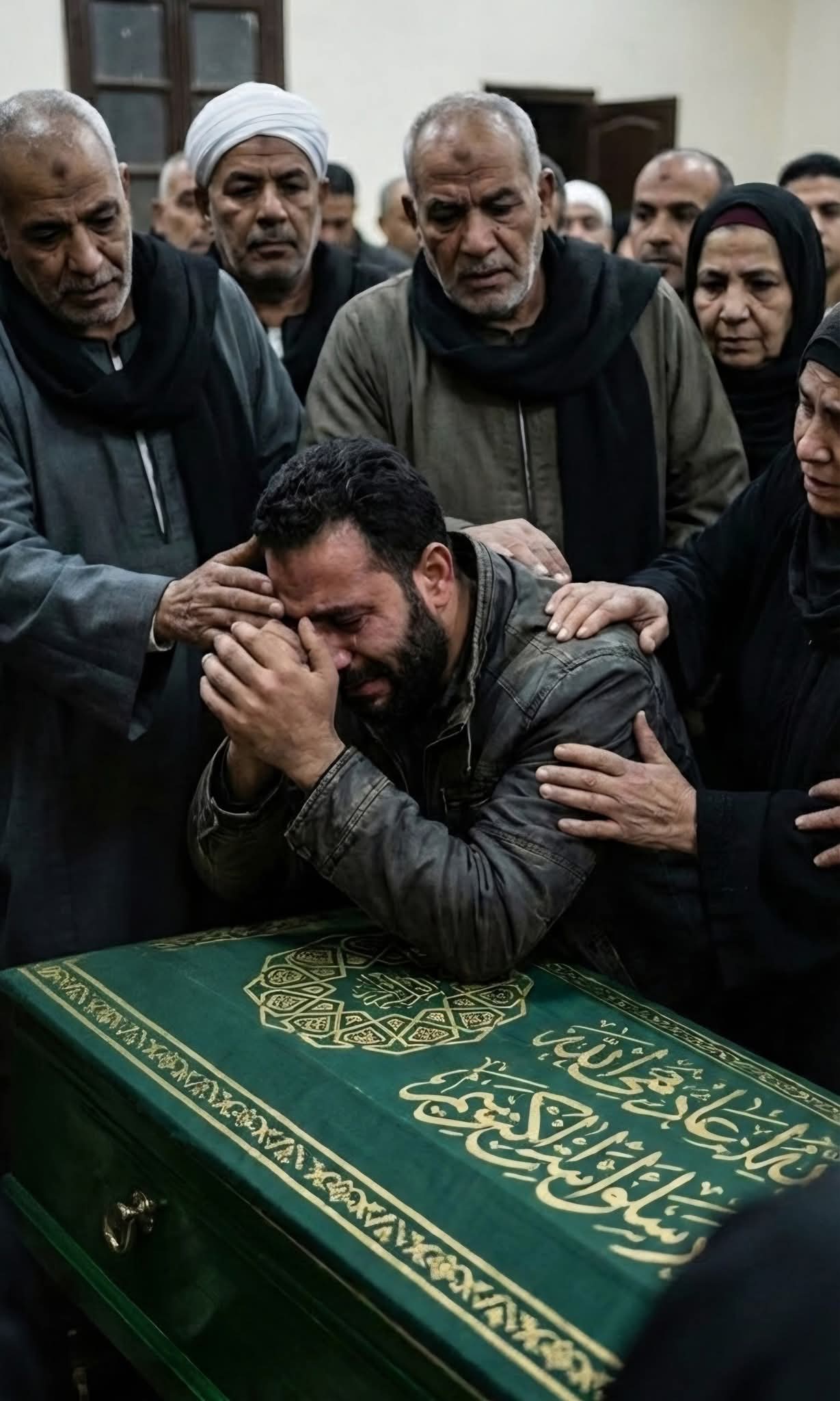 زوجة ابنها أثناء الولادة ثمانية رجال لم يتمكنوا من رفع النعش وعندما طلبت حماته فتحه… تردد صدى أصوات أبواق الچنازة الحزينة في الأزقة الضيقة ممزوجا برذاذ المطر الخفيف الذي ينهمر على سقف من الصفيح الصدئ. في وسط الفناء استقر